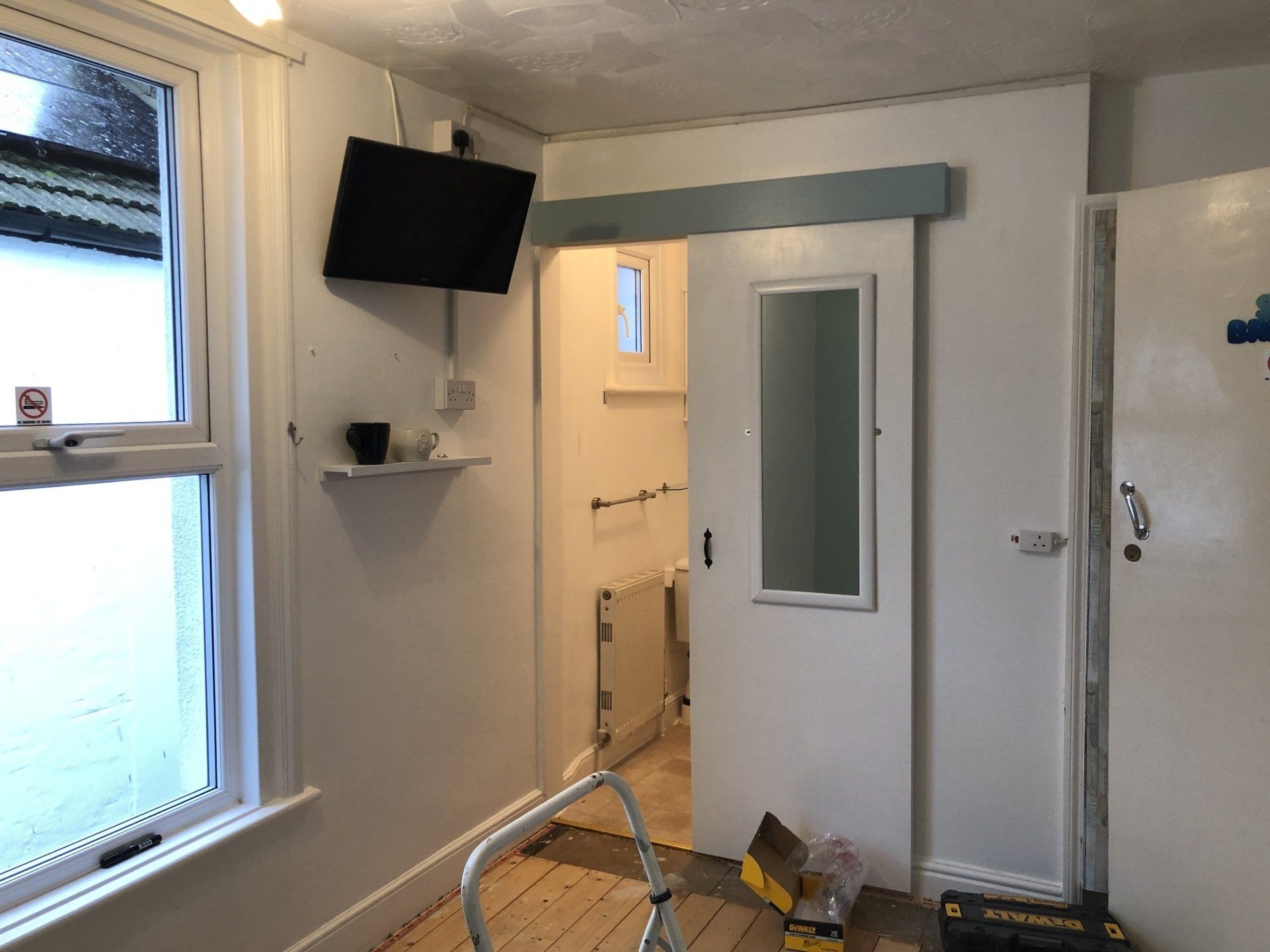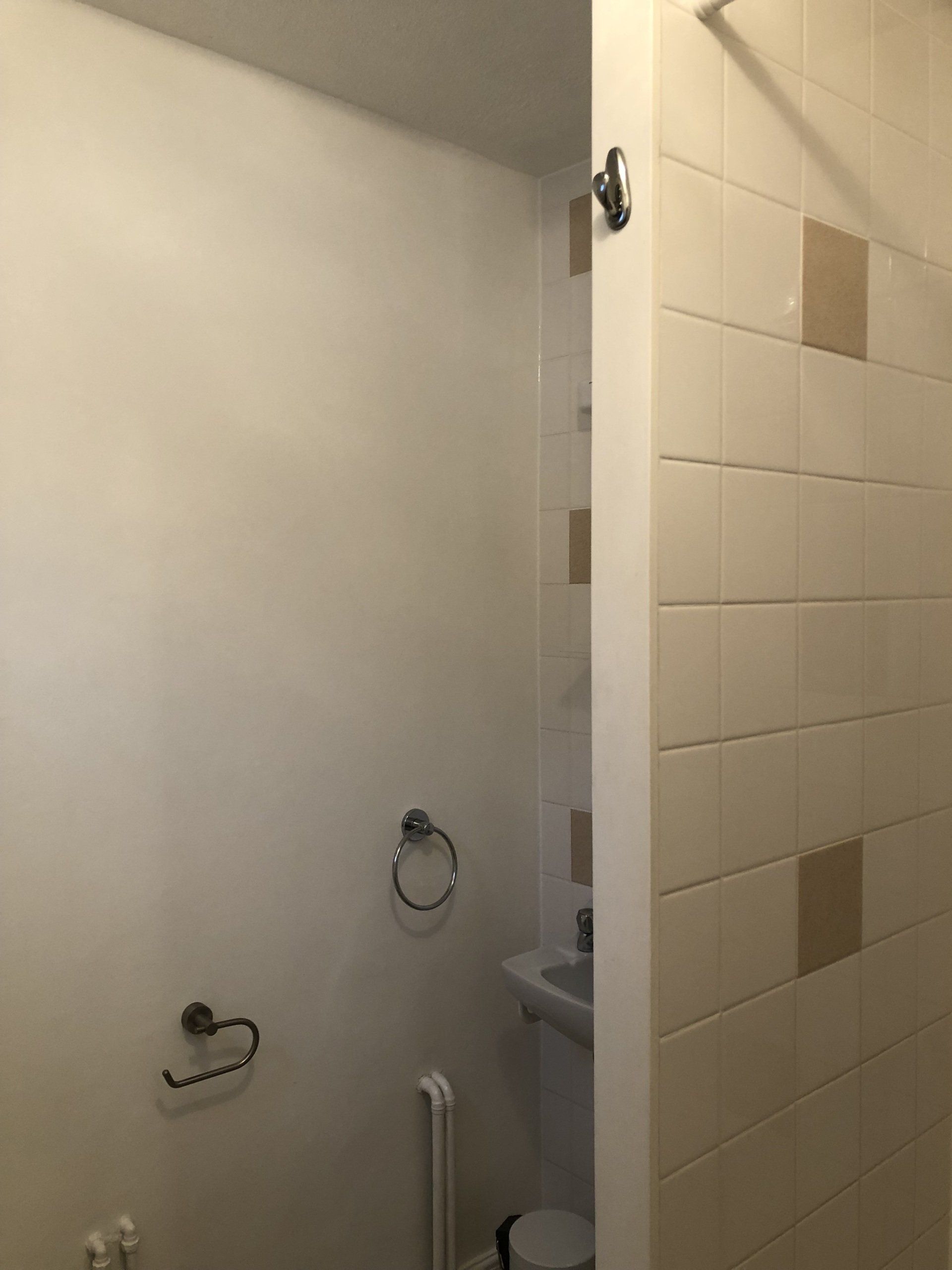 We are starting to remove the internal wall that separatesthe shower cubical from the room. Luckily, this is just a studded wall and not load bearing.